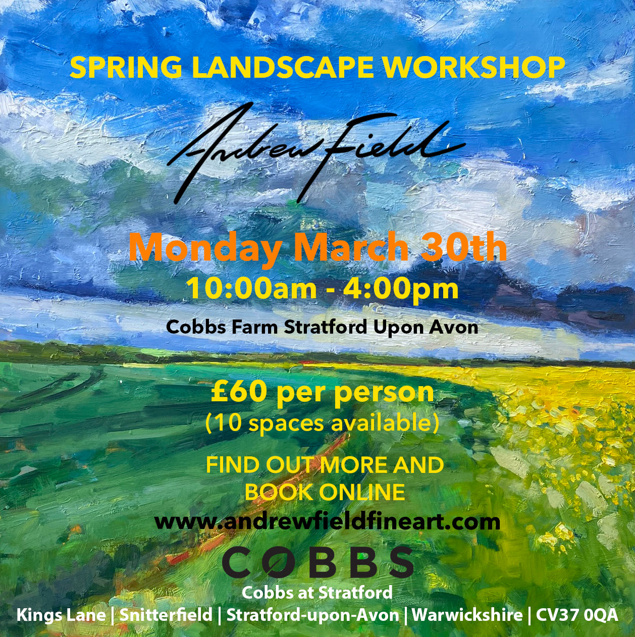 Spring Landscape Painting Workshop at Cobbs Farm Stratford Upon Avon on Monday March 30th