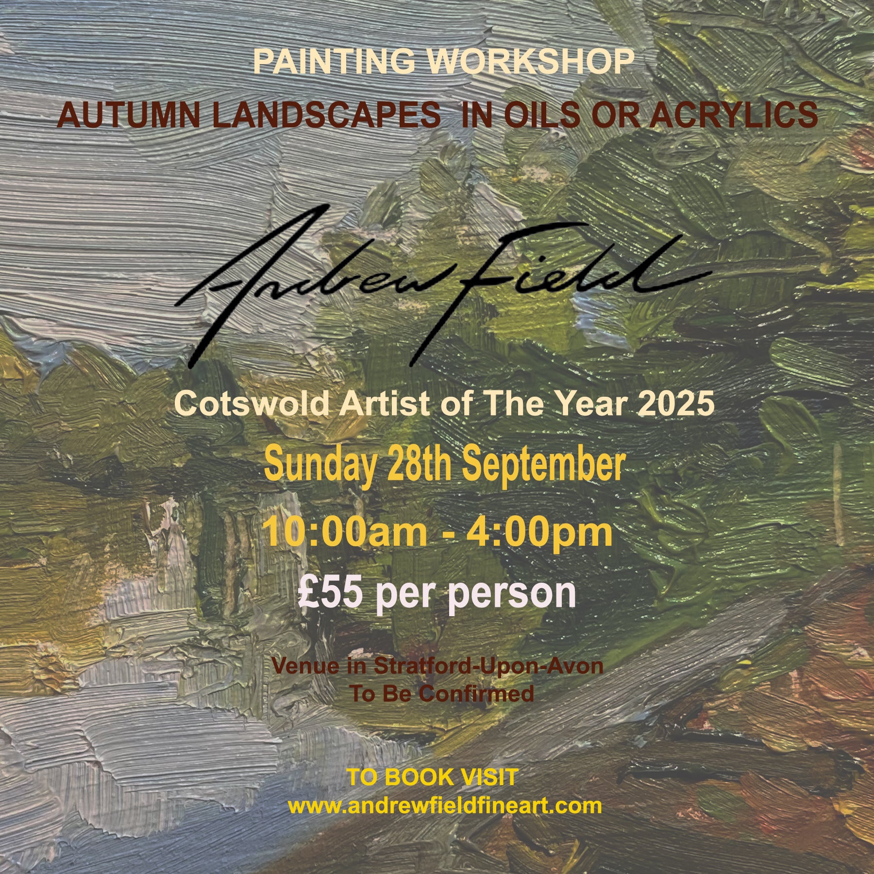 An opportunity to watch a painting demonstration by 'Cotswold Artist of The Year 2025' to gain an insight into his selection of materials including brushes, colours, painting mediums and surfaces that he prefers to use. The day will start 10:00am with a demonstration followed by a series of painting activities designed to build confidence with oils or acrylics. There will be a lunch break and in the afternoon session there will be more painting activities leading towards a completed painting to take home. The aim of the workshop is for participants to feel a lot more confident with the application of paint focusing on composition, colour mixing and colour theory as well as mark-making. This workshop is open to all abilities and participants will receive a list of materials to bring. The workshop will end at 4:00pm with a celebration of work.
